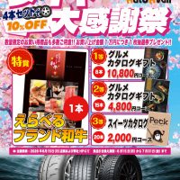 期間中、タイヤお買い上げ金額10,000円につき抽選券を1枚プレゼントいたします!